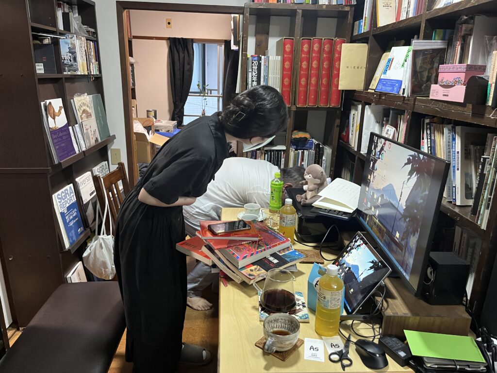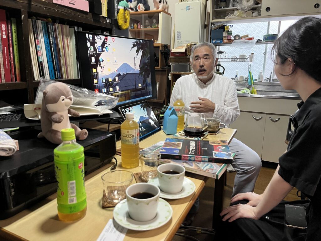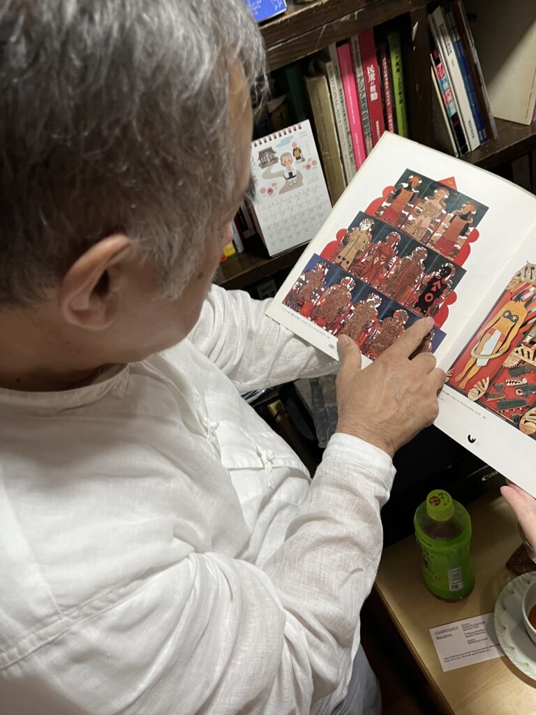 We visited a bookstore”Bibliotheca lizard” after reading his essay “ART OF SOUTHEAST ASIA UNDER JAPANESE OCCUPATION), 1942-45」(2013, Tetsugaku nenpō 72, 49- 72. / 2021, Bunka-cho Art Platform Japan),” which describes the influence of the Japanese military government on the history of modern art in various parts of Southeast Asia, as well as the layers of cultural exchange and conflict. On a rainy Fukuoka evening, we were able to sip on the warm coffee he gave us and hear about the reckless and brave young Ushiroshōji’s journey to Southeast Asia in the 1990s.